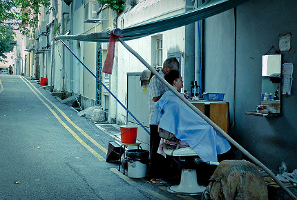 Speaking of which, if you fancy a haircut, hop in the barber’s chair outside 23 Amoy Street, which belongs to one of Singapore’s last remaining roadside hairdressers, Mr Lee. Nudging 80-year-old Lee offers cheap haircuts, wet shaves and ear cleaning.